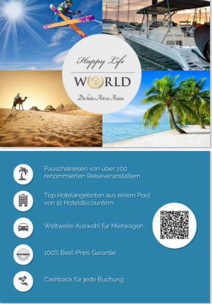 100 Prozent Happy Life World Super Sparpotential für Pauschalreisen, Reisen,