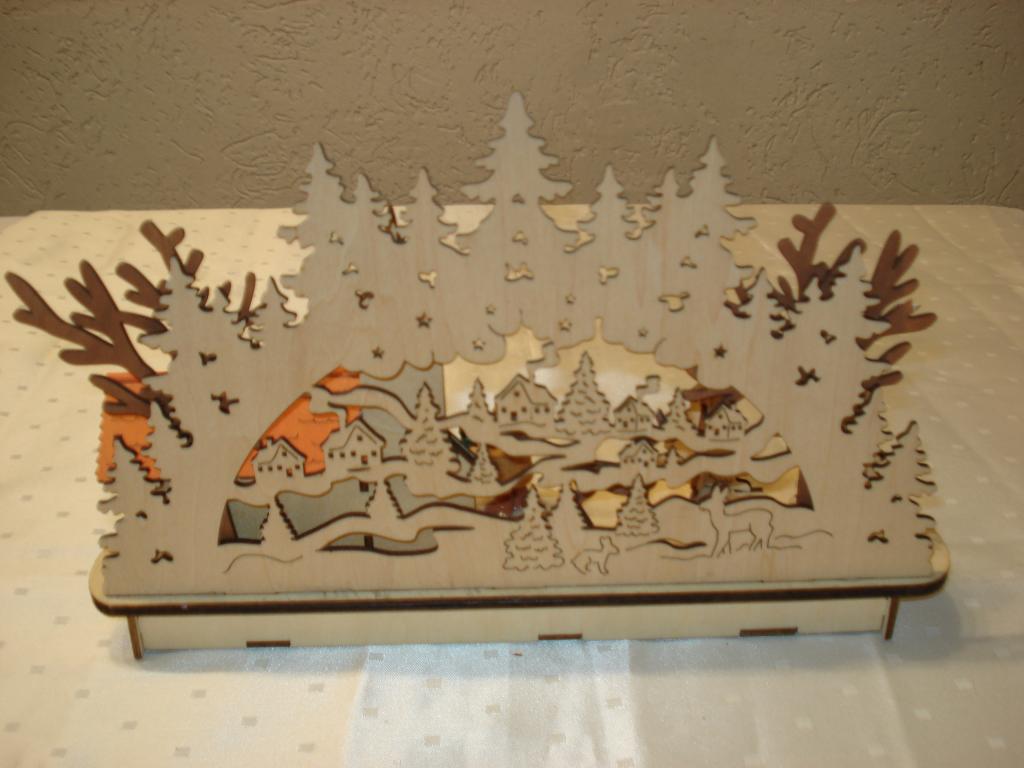Holz Weihnachtsdorf mit LED Beleuchtung neuwertig
