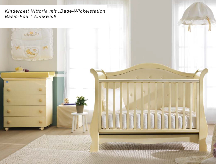 Luxus Kinderbett im Retro Design Victoria - Babybett umbaubar