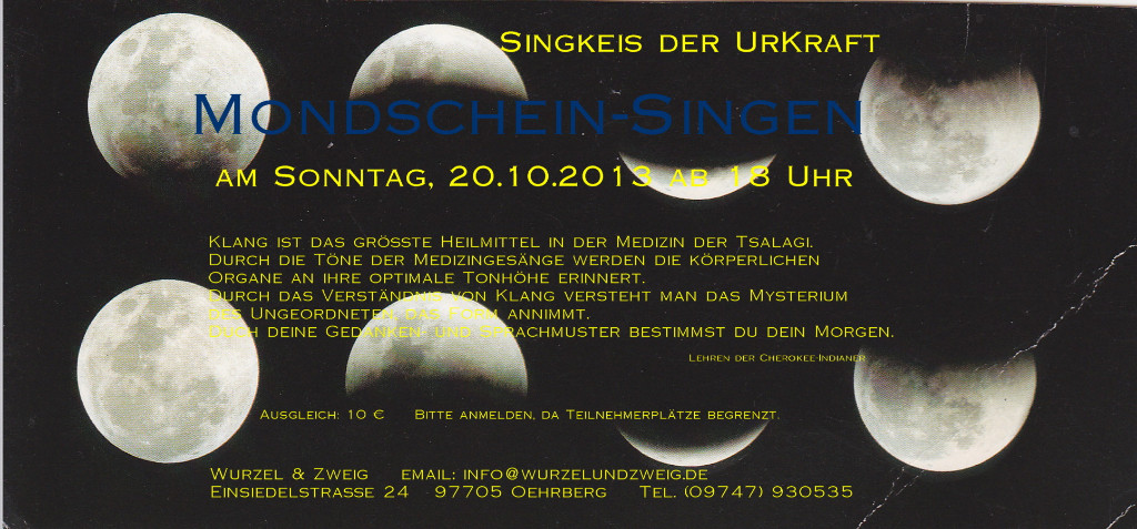 Teilnehmer seine ureigene Stimme wieder entdecken. Durch die Wiederholung der Gesänge kommt unser Verstand zur Ruhe, der Geist wird wieder frei. Wir erreichen eine Schwingungsebene, die direkt mit dem Herzenchakra verbindet und die Seele weit und warm macht. Die Gesänge schaffen
