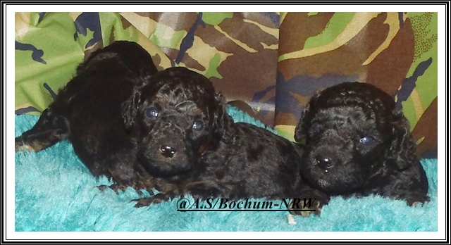 Zur Zeit haben wir robuste, kernige Kleinpudelrüdenwelpen in black-tan Pap., geboren am 18.08.2021. Die Welpen werden sehr wahrscheinlich ein Endmass zwischen 40-45 cm erreichen.