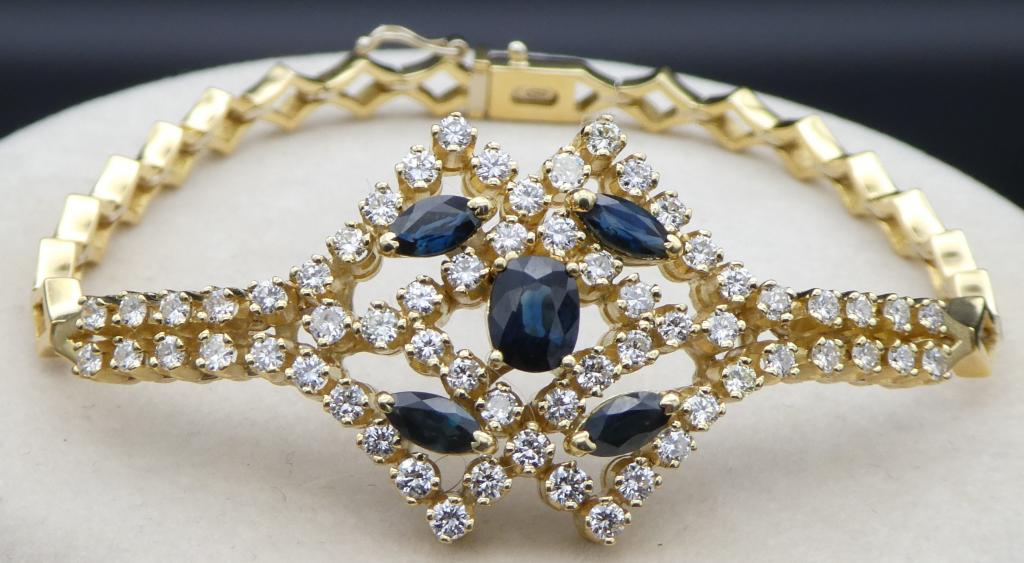 PRACHTCOLLIER - ARMBAND - OHRGEHÄNGE GG 750 gesamt 10,10ct Brillanten und 12 ct. Saphire Juwelierwert c. 42.500.-- €