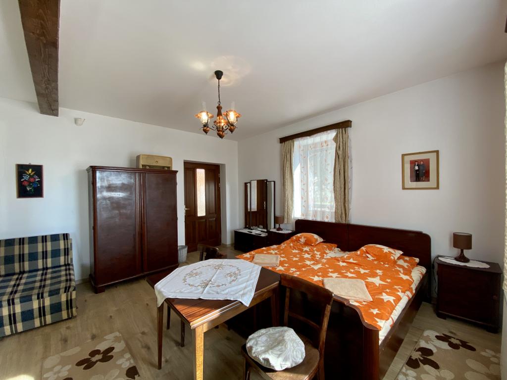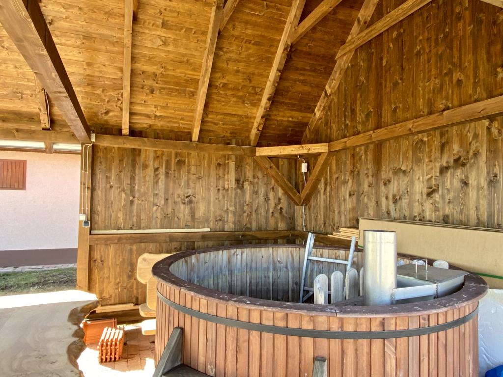 Anforderungen von heute. Die Wasserversorgung der Gebäude erfolgt jedoch über einen Bohrbrunnen, und es wurde eine Wasseraufbereitungsanlage zur Trinkwasserversorgung installiert. Das erzeugte Abwasser wird von einer kleinen biologischen häuslichen Kläranlage entsorgt, so dass ein Schnüffeln selten erforderlich ist. Die Gebäude werden von einer Zentralheizung mit Holzvergasungskessel beheizt. Die temperierte Heizung wird von 3 Kühl-Heiz-Klimaanlagen bereitgestellt. Die beheizten Gebäude wurden mit modernen Isolierfenstern und Wärmedämmung renoviert. Das Hauptgebäude verfügt über 3 Zimmer, jedes mit eigenem Bad. Darüber hinaus gibt es einen Kleiderschrank, eine Küche und ein Esszimmer sowie Vorratsräume. Vor dem Gebäude befindet sich eine Veranda, die auf Anfrage gebaut werden kann. In einem der Wirtschaftsgebäude befindet sich das Kesselhaus, das das gesamte elektrische und mechanische Zentrum des Hofes darstellt. Hier ist der Wechselrichter der Solaranlage mit einer Leistung von 6,5 kW sowie die Steuerung des Solarkollektorsystems zur Warmwasserbereitung. In diesem Raum befindet sich auch das Wasseraufbereitungssystem. Der andere Raum in diesem Gebäude ist eine Sommerküche, die auch für die Verarbeitung in kleinem Maßstab geeignet ist. Das nächste Gebäude verfügt über eine Küche. Es gibt auch eine externe Toilette und ein Duschbad, was für die Landwirtschaft unerlässlich ist. Es gibt auch 2 Geflügelställe, die mit diesem Gebäude verbunden sind. Das für das Heizsystem erforderliche trockene Holz wird von einem Gore bereitgestellt, das einen wesentlichen Blick auf einen Hof bietet. Das Gehöft hat auch einen Hofsitz für Familienfeiern, der Platz für 12 Personen bietet. Für Familien mit kleinen Kindern gibt es außerdem einen Spielplatz mit Kletterpflanze, Kleiderbügel, Ketten- und Schuppenschaukeln sowie eine Gummiabdeckung.
