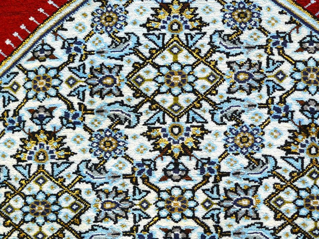 Knoten: Persisch, asymmetrisch. Ca. 500.000 per m2, handgeknüpft, 340 Tage Arbeit nur für das knüpfen, dazu kommen, Entwurf auf Millimeterpapier, Erzeugung und