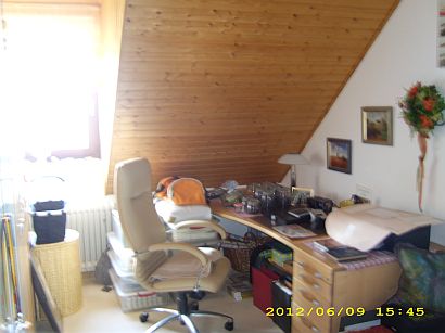 Kellerraum und ein PKW- Stellplatz sind natürlich inkl. Die Wohnräume haben Holzdecken.