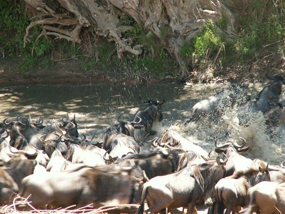 Tag 7: Heute wird auch wieder früh gefrühstückt und dann geht’s auf eine längere Fahrt zu der berühmten Maasai Mara, wo sie am Mittag eintreffen. In der Zeit von Juli bis September findet die grosse Migration (Gnu-Wanderung) statt. Diese sensationelle Wanderung mit über 1 Mill. Gnus und vielen Zebras sowie Antilopen ist weltweit ein einmaliges Schauspiel. Tiere soweit das Auge reicht!!! Spektakulär sind auch die Flussüberquerungen der Gnus, wenn hunderte oder manchmal auch tausende Gnus und Zebras in die Fluten springen und dort schon die Krokodile auf ihre Mahlzeit warten! Natürlich fehlen hier die großen Raubkatzen auch nicht, denn die finden hier den Tisch reichlich gedeckt. Doch auch zu jeder anderen Zeit ist die Maasai Mara ein grossartiges Erlebnis. Nach dem Mittagessen und einer kurzen Pause, starten Sie die erste grosse Pirschfahrt durch die weite Grassavanne der Maasai Mara mit den ausladenden Schirmakazien. Mahlzeiten und Übernachtung in der Camp/Loge.