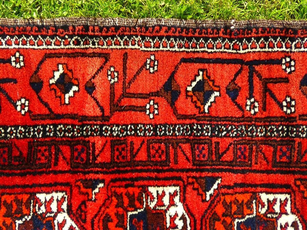 Zustand: Der Gesamtzustand sehr gut, Vollständig erhalten mit fein gewebten Kelimabschlüssen, diese wurden neu befestigt, der Teppich wurde entstaubt und bekam eine Oberflächenwäsche.