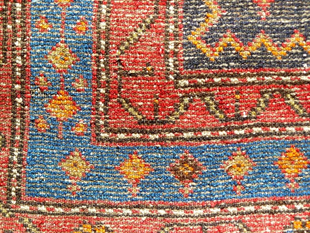 Bemerkungen: Folkloristischer Dorfteppich. Harte Wolle, kurze Schur. Das