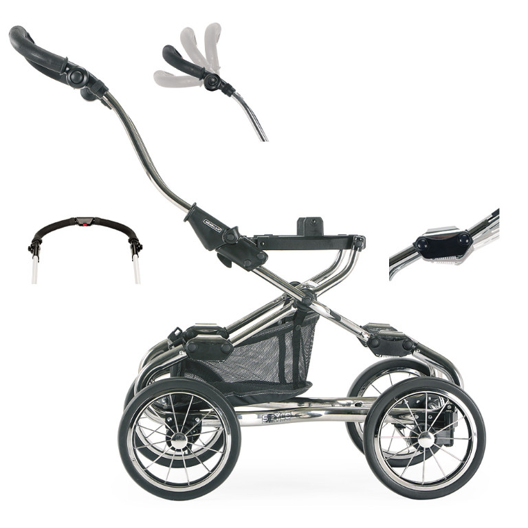 Verchromtes Aluminiumgestell mit mehrfach verstellbarer Lenkstange