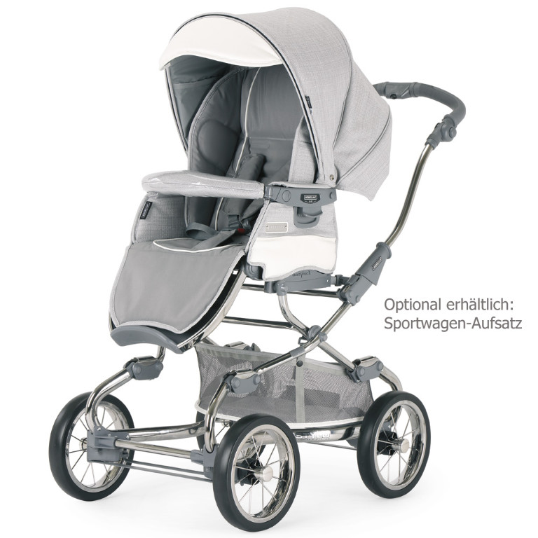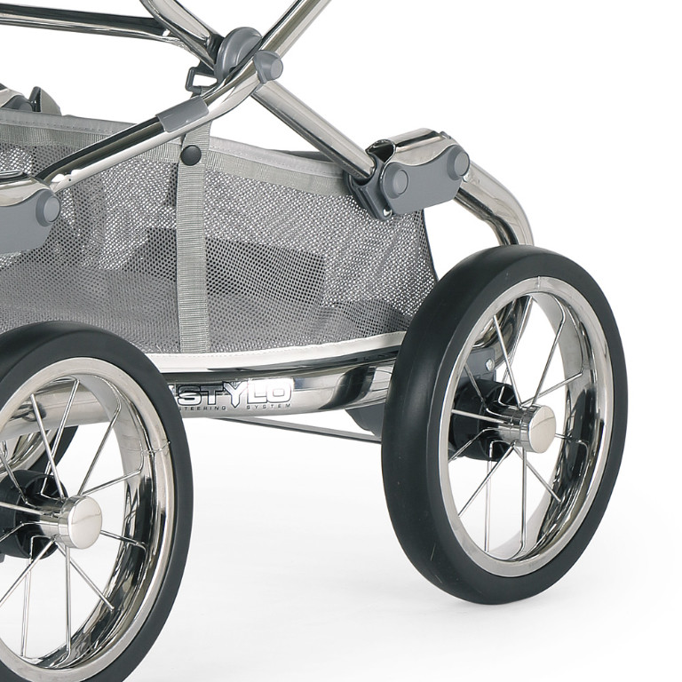 Der klassischer Kinderwagen Stylo ELS aus dem Hause Bebecar ist luxuriös ausgestattet und glänzt im traditionellen Look. Er zeichnet sich durch die besonders großen Speichenräder aus, die anders als die Räder unserer Stylo-Class-Modelle, schwarz gummiert sind. Der Kinderwagen mit dem großen Wannenaufsatz eignet sich für Ihr Baby bereits ab dem 1. Lebensmonat. Er kann durch das integrierte Easylock System* flexibel und leicht angebracht und abgenommen werden. Die Oberfläche des schicken Wagens, die ein wenig an grobes Leinen erinnert, ist dank spezieller Nanopartikel besonders schmutzresistent. Der untere Teil der Babywanne, sowie das Sonnenverdecke wurde mit Kunstlederelementen zusätzlich verstärkt.