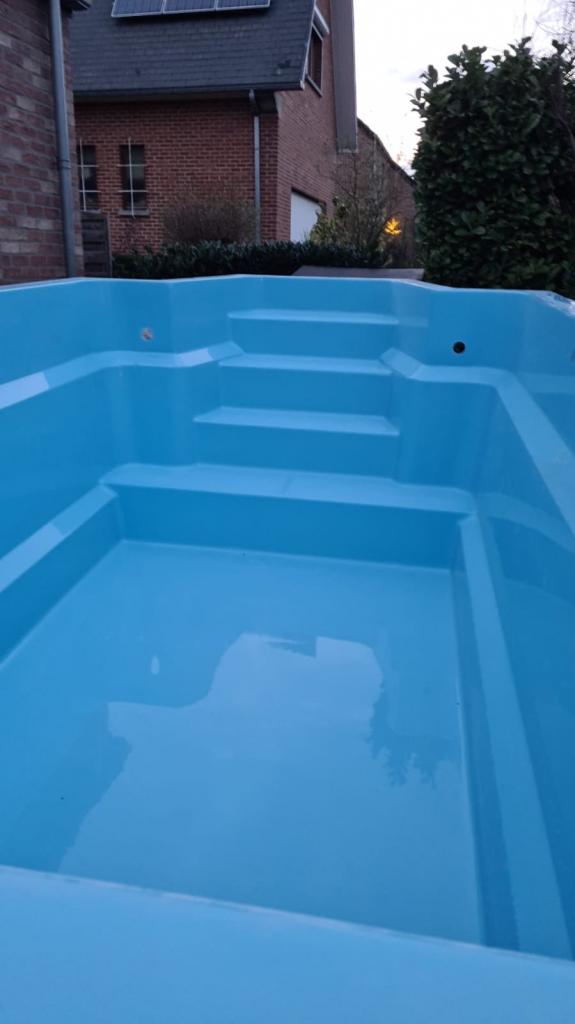 • 3 Farbvarianten der hergestellten Schwimmbecken (weiß, blau und hellgrau)