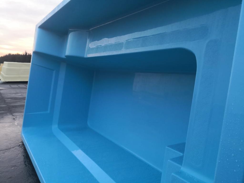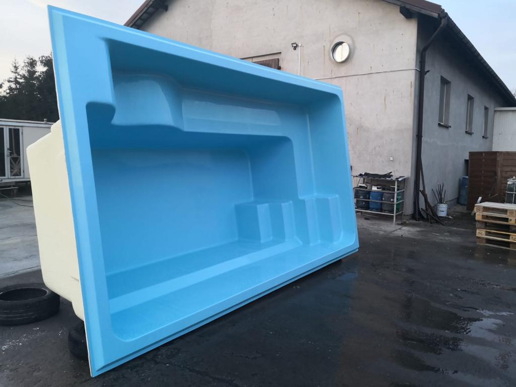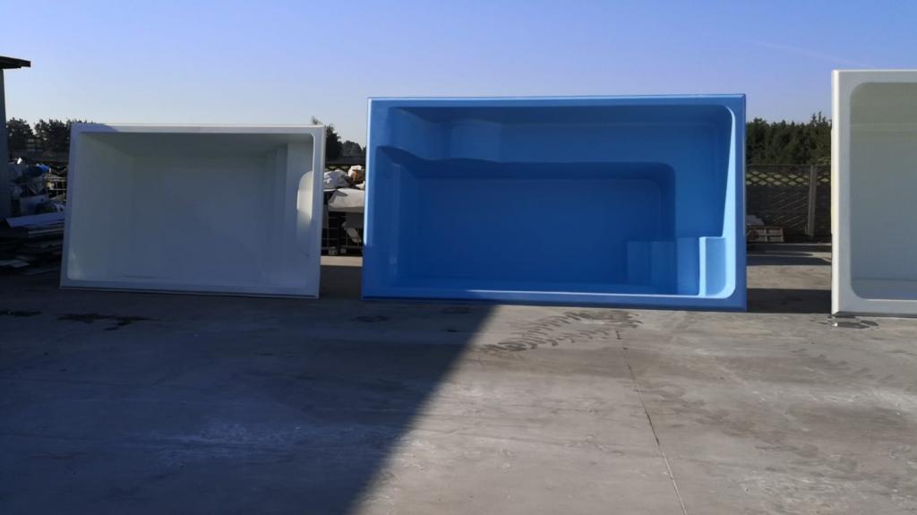 • 3 Farbvarianten der hergestellten Schwimmbecken (weiß, blau und hellgrau)
