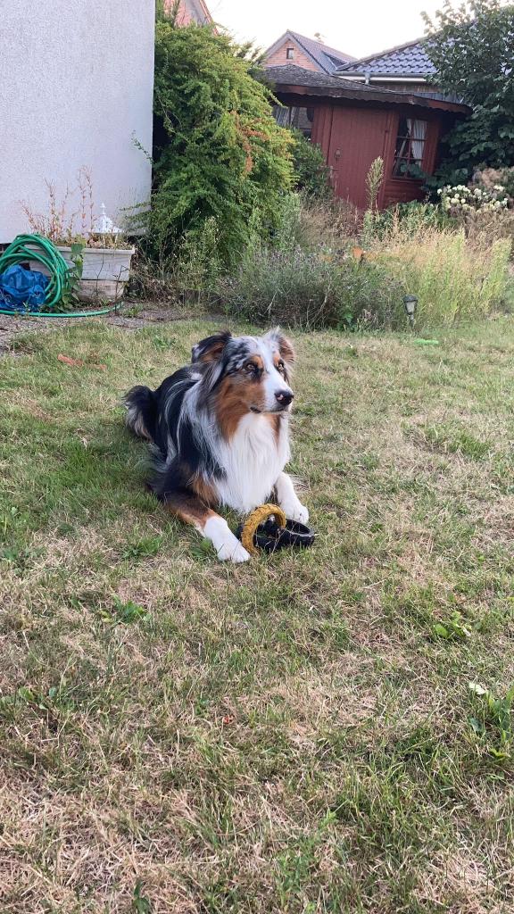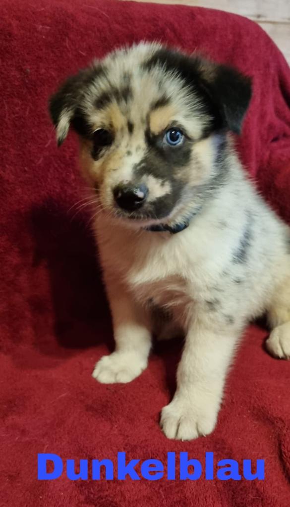 Australian Shepherd Rüde in der Farbe Blue Merle.