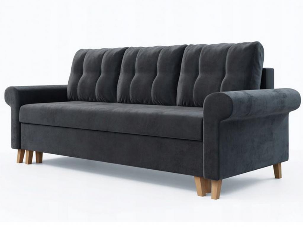 Das Sofa wurde vollständig mit Kronos-Stoff genäht - einem Material, das weich und angenehm anfühlt und einen erhöhten Widerstand gegen Flüssigkeitsaufnahme aufweist. Ergänzt wird das Ganze durch hohe, buchenfarbene Holzbeine, die perfekt zur Möbellinie passen. Sie können die Ecke ganz einfach in ein Bett von 202 x 132 cm verwandeln.