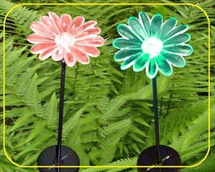 Der durch LED beleuchtete Acryl-Blume sitzt auf einem stabilen Metallstab.