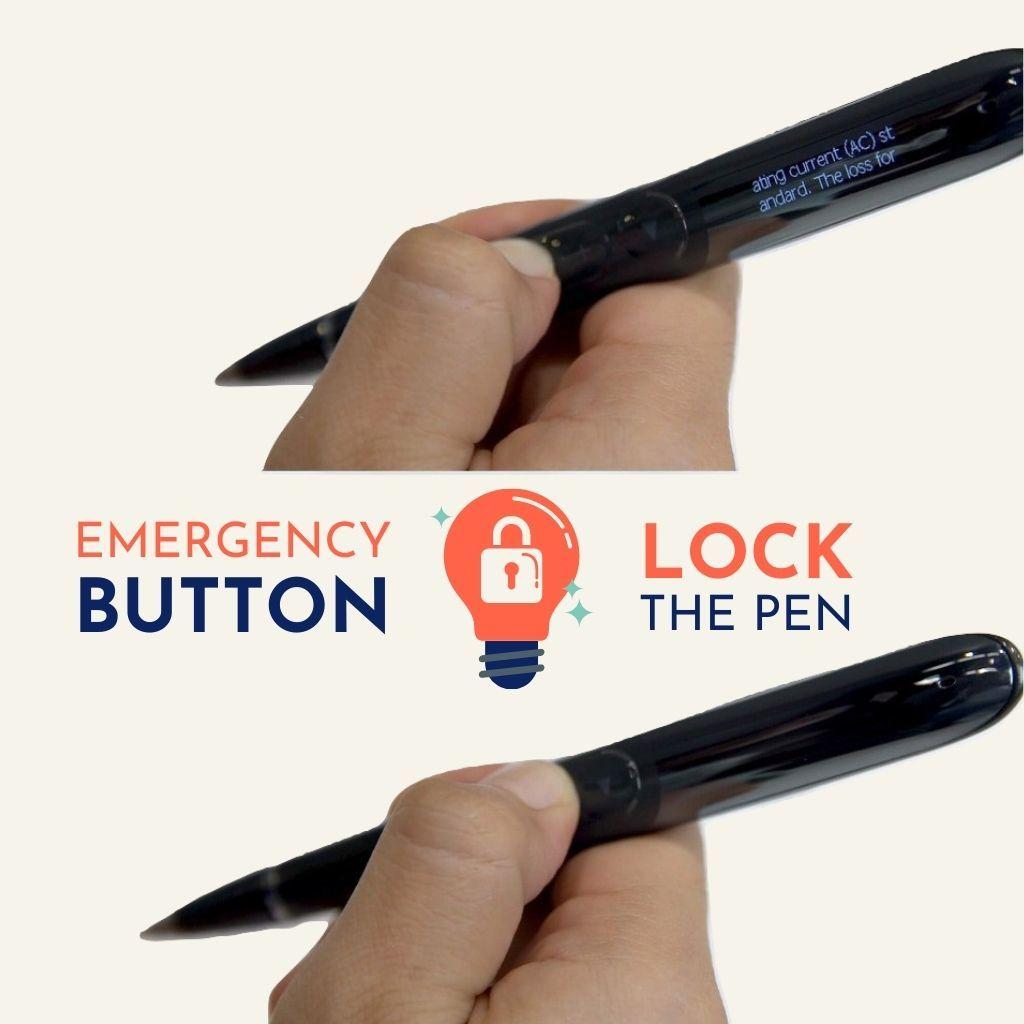 - Notfall Knopf. Sie können es jederzeit aktivieren: Sobald Sie die Taste drücken, sind die restlichen Tasten gesperrt und vollständig dunkel. Verwandle es in einen normalen Bleistift. Nur der Benutzer kennt die Entsperr Kombination.
