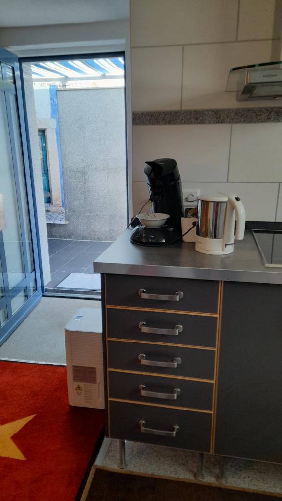 Dunstabzugshaube, Geschirrspüler, Kaffeemaschine, Kochzeile, Kühlschrank,Gefrierfach, Wasserkocher