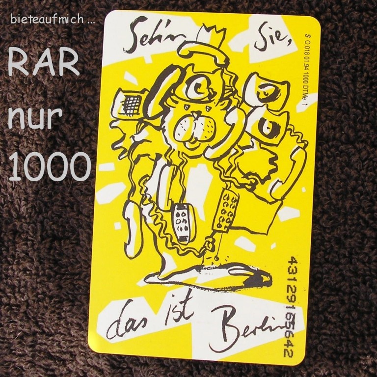 voll, neu, nur 1.000 Telefonkarten, Kartenbezeichnung S O 018 01.94 1.000 DTMe
