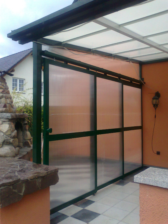 Bestellen Sie Überdachung mit Festverglasung. Sehr populäre Lösung vor allem in Gastronomie – wenn man einen neuen Raum gewinnen will – schauen Sie unsere Fotos an.