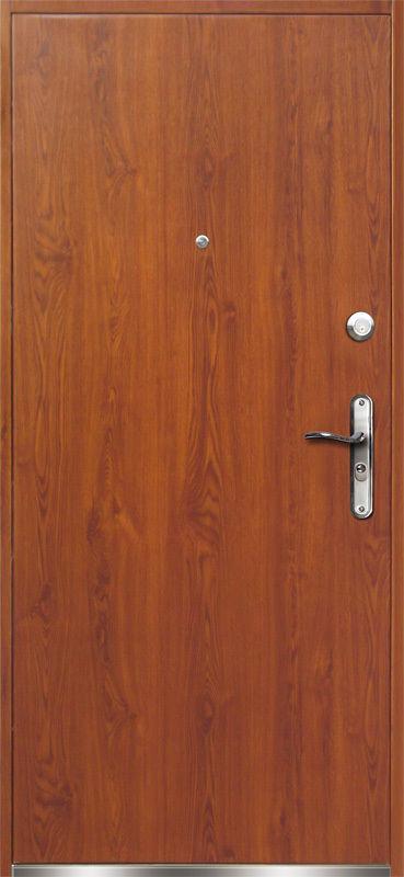 Die Stahleingangstür und Türzarge sind aus rostfreiem Stahlblech hergestellt, das zusätzlich mit PCV-Folie in Farbe und Struktur von Holzt bedeckt wurde, die gegen UV-Strahlen beständig ist.