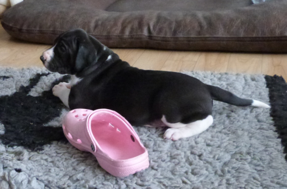 November vier gesunde Welpen nach Ellute vom Schöntal geboren. Beide Eltern sind HD-frei. Unsere "F-chen" sind eine schwarze Hündin und drei gefleckte Rüden. Unsere Welpen wachsen im Haus auf, sind an Katzen und Kinder gewöhnt und lernen alles kennen was zu unserem Familienalltag dazugehört. Bei Abgabe, ab Anfang Januar, sind sie selbstverständlich gechipt, geimpft und mehrfach entwurmt. Der Wurf wird von einem