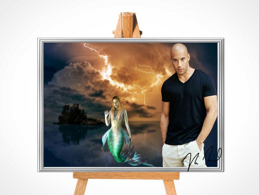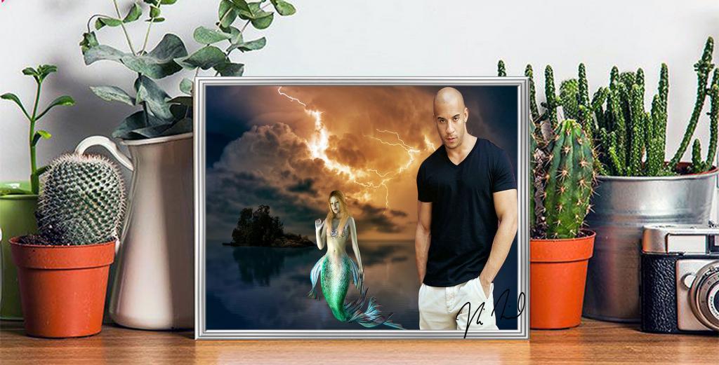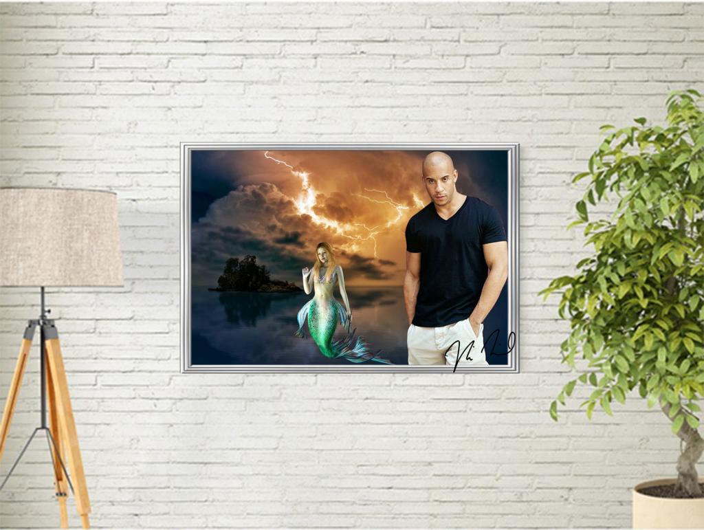 VIN DIESEL Begegnung mit Meerjungfrau.. Blickfang! Zimmerdeko. Geschenkidee. Uni