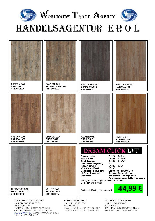Dream Click ist dank seiner vielen Vorteile einfach unschlagbar. Sie benötigen keinen Klebstoff. Alle Bretter lassen sich auf allen Seiten einfach zusammenstecken. Der Untergrund benötigt kaum oder keine Vorbereitung. Das vereinfacht nicht nur das Verlege, sondern spart auch viel Zeit! Die Vorteile von Dream Click gehen jedoch weit über das einfache Verlegen hinaus. Der Boden ist auch hitze- und Wasserbeständig, er verzieht sich nicht und kann deshalb auch in feuchten Räumen verlegt werden. Dream Click dämpft Geräusche und hat darüber hinaus den Klang eines echten Holzbodens. Der Boden kann einfach mit einem Besen, Bodenwischer oder Staubsauger gereinigt werden. Im Gegensatz zu Parkettböden benötigt er keine Spezialbehandlung und er ist zudem langlebiger als Echtholzböden. Die Dream Click-Bretter können recycelt und immer wieder verwendet werden.