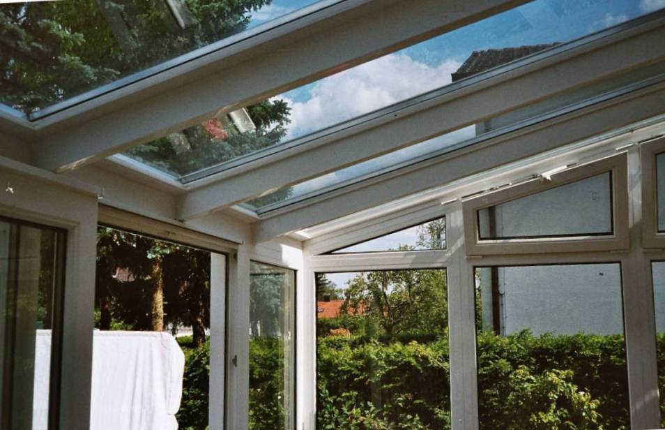 Innenseite VSG - Sicherheitsglas (3 mm Glas mit Folie verschweißt mit x 3 mm Glas) 6,1 mm VSG - Glas für Außenseite 6 mm float-Glas. Der U - Wert beträgt ca 1,2 für Dachglasaufbau Das Dachglas wird nicht durch Gummi an der Außen oder Innenseite gehalten. Wir verkleben unsere Dachglas auf der Außenseite zu einer glatten Glasfläche auf welcher auch kein Wasser eindringen kann.