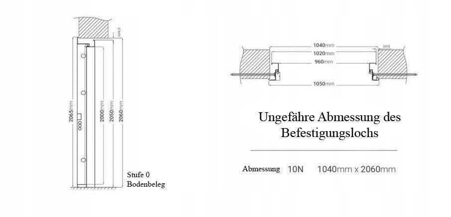 -mit einem Stahltürrahmen: 1040x2060 mm