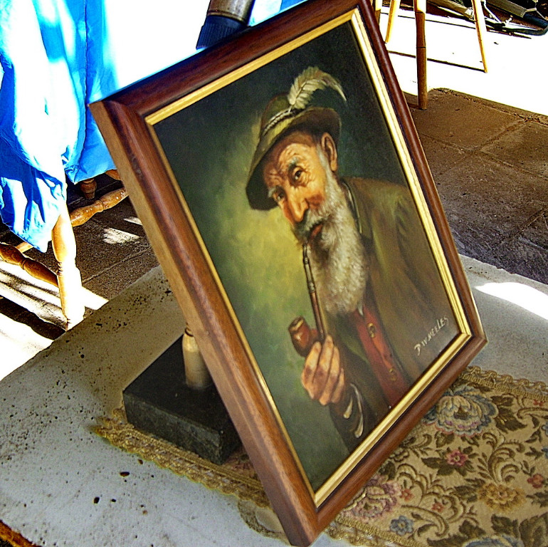 Der Ramen ist Eichenholz und mit goldener Umrandung abgesetzt.Es ist auf jeden Fall ein altes Gemälde und gut erhalten.