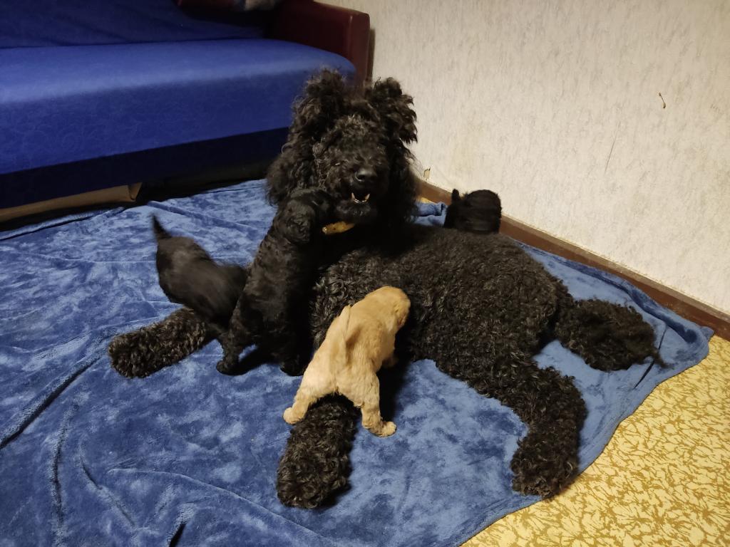 Die Welpen und die Mutter können ab sofort besucht und reserviert werden. Mutter(Großpudel) und Vater(Mittelpudel) der Welpen wurden auf verschiedenste Erbkrankheiten getestet. Die Welpen werden später zwischen 40 und 50 cm Widerristhöhe liegen aber eher in der oberen Hälfte und Manchmal auch darüber.