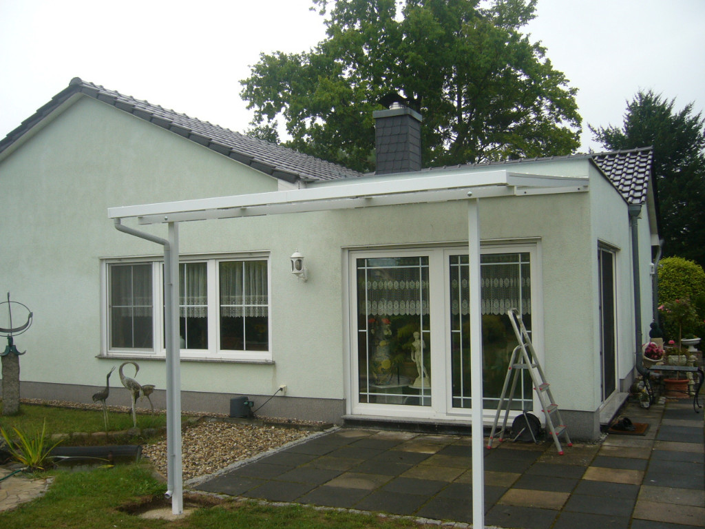 Unsere Überdachungen montieren wir entweder am Hauswand oder Freistehend.