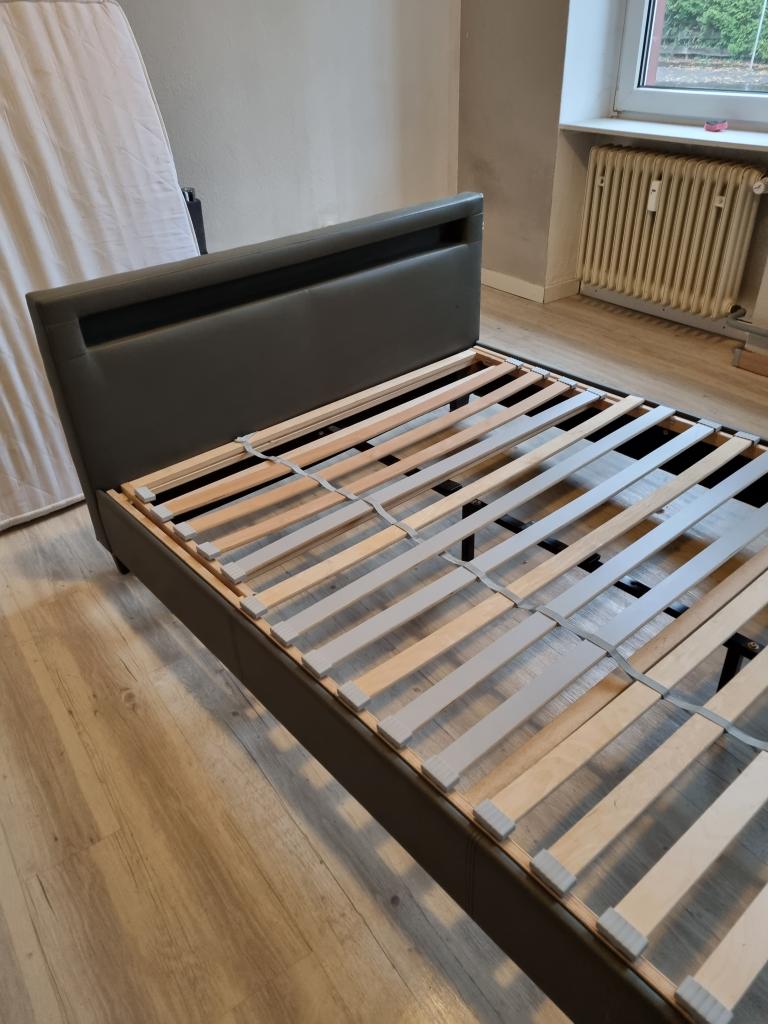 Hier biete ich euch ein sehr schönes Bett, in der Farbe grau, 140x 200 cm an. Das Lattenrost gebe ich gratis dazu. Für 85 Euro Festpreis könnt ihr es gerne haben. Das Bett hat normale