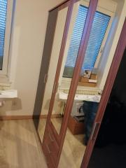 Hier biete ich euch meinen sehr großen Schlafzimmer Schrank mit Spiegel in der Farbe Walnuss schwarz für 150 Euro VB an. Der Schrank bietet euch sehr viel Stauraum für Klamotten etc. Der Schrank